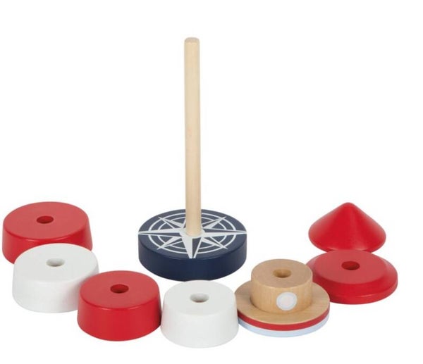 Deze stapeltoren sitmuleert zelfs de allerkleinsten om de zeven verschillende stapelelementen van de vuurtoren op grootte te sorteren en op elkaar te stapelen.