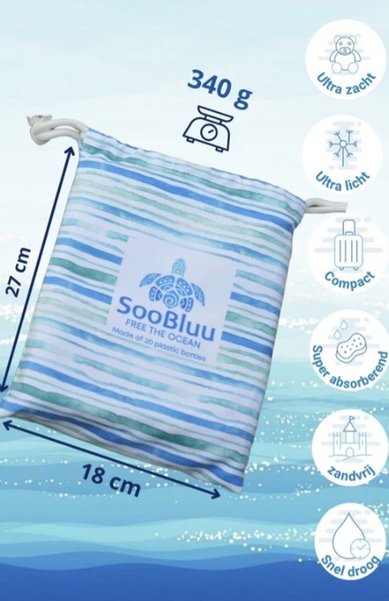 Elke strandhanddoek van Soobluu is gemaakt van 20 gerecyclede PET-flessen. Ze zijn super zacht en soepel en ze drogen goed af.