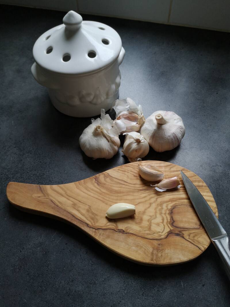 Zwaar plankje van olijfhout. Ideaal als je dit alleen voor knoflook gebruikt, zodat je andere snijplanken niet naar knoflook gaan ruiken. Alle planken zijn gemaakt uit één stuk hout, waardoor het zeer sterk is. Bij de juiste behandeling (afwassen met de hand) gaat het plankje jarenlang mee. Af en toe insmeren met wat olijfolie zorgt ervoor dat de plank niet gaat uitdrogen.